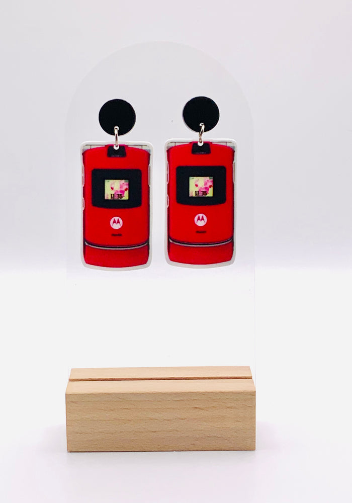 Pink Rzr Flip Phone Earrings